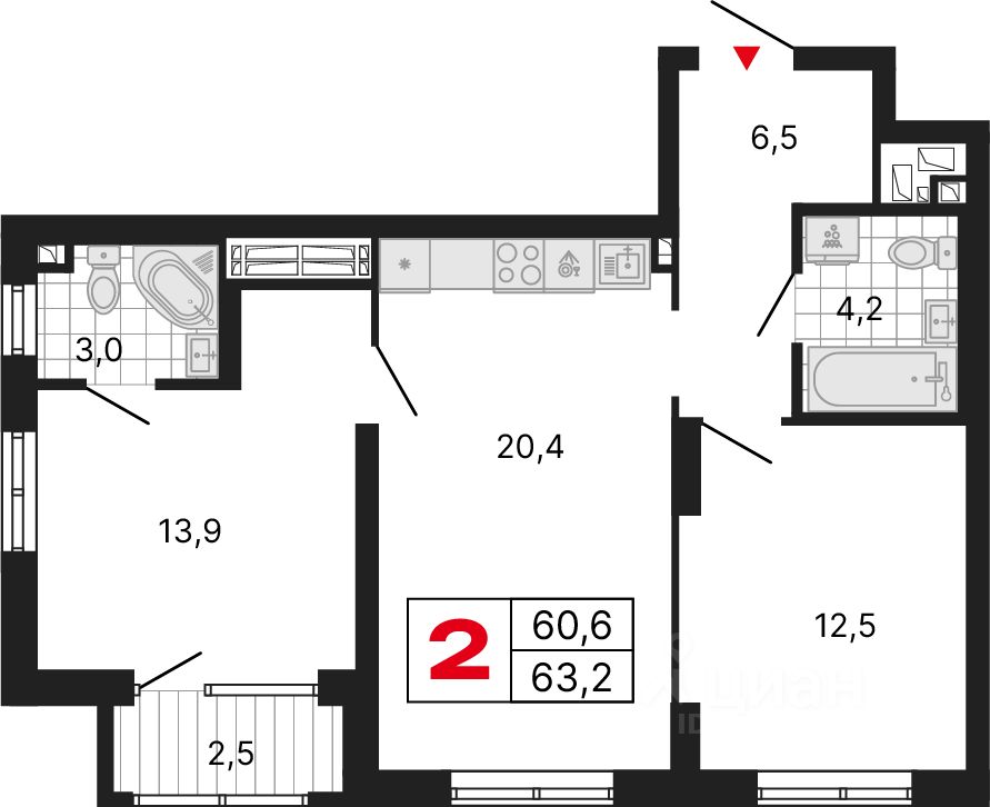 Продаётся квартира в Квартал-парк "Каменные палатки". 4 очередь, 13 секция. 1-комнатная квартира, 63,23 м², 272. Стоимость указана с учетом отделки: На выбор: White Box, Чистовая + санузел White Box, Чистовая + санузел в финишной отделке.