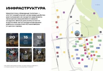 Инфраструктура и доступность: Рядом — детсады, школы, супермаркеты и остановки общественного транспорта. На территории квартала уже есть муниципальный детский сад на 200 мест. До центра города — 1015 минут. Удобный выезд к ключевым магистралям.