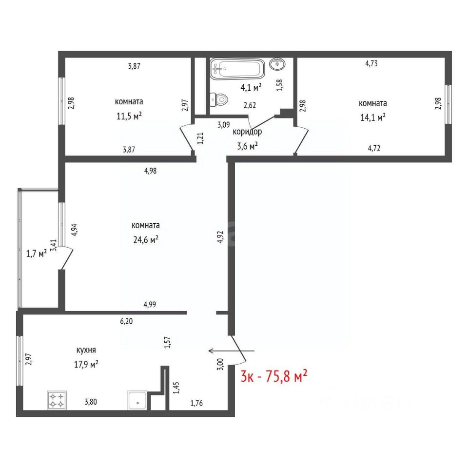 Продается трехкомнатная квартира 75,8 м² с дизайнерским ремонтом в монолитно-кирпичном доме 2011 года постройки. Все комнаты изолированы, что обеспечивает комфорт и приватность для семьи или возможности для организации кабинета.