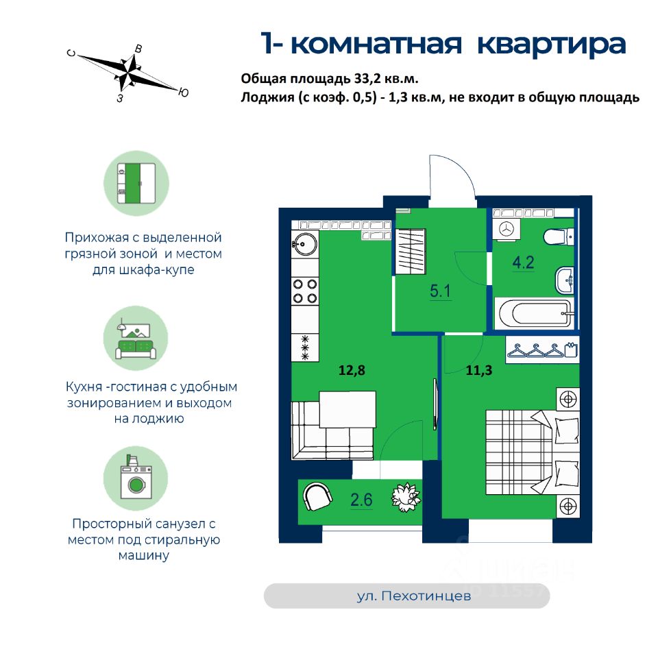 Продаётся 1-комнатная квартира в сданном доме (Пехотинцев, 2А/1), срок сдачи: I-кв. 2026, общей площадью 33.2 кв.м., на 24 этаже. Новый жилой комплекс "Estelle" от застройщика "СЗ Инвестстрой" расположен по адресу: г. Екатеринбург, улица Пехотинцев.