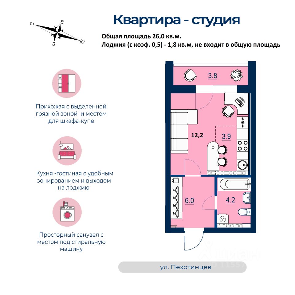 Продаётся студия в сданном доме (Пехотинцев, 2А/1), срок сдачи: I-кв. 2026, общей площадью 26 кв.м., на 24 этаже. Новый жилой комплекс "Estelle" от застройщика "СЗ Инвестстрой" расположен по адресу: г. Екатеринбург, улица Пехотинцев.