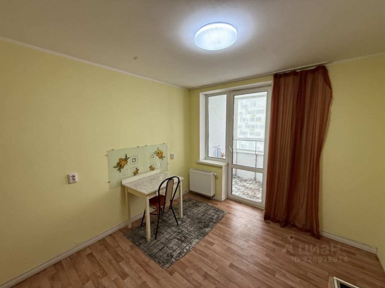 Большая светлая комната 14 кв.м и просторная кухня 10 кв.м. На кухне остается кухонный гарнитур со стеклокерамической варочной панелью.