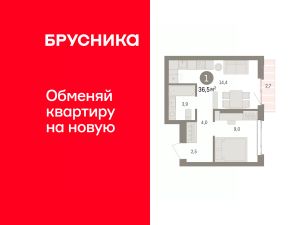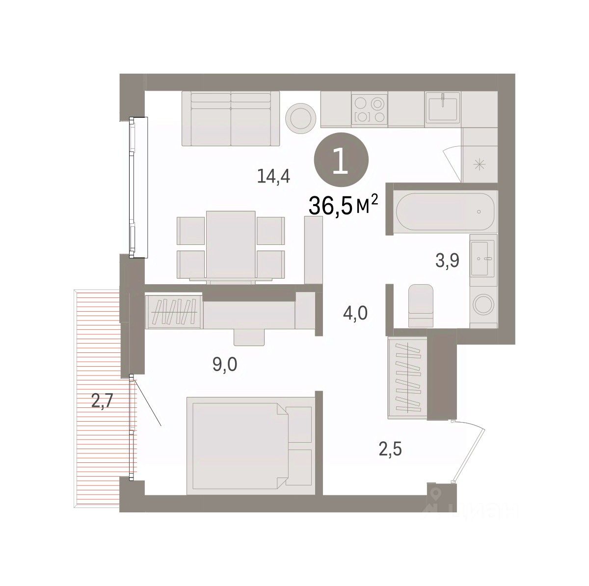 Однокомнатная квартира от застройщика с предчистовой отделкой в ЖК "Квартал Траектория" на 14 этаже. Общая площадь: 36.5 кв.м., жилая: 9 кв.м., площадь просторной кухни-столовой: 14.4 кв.м. Все окна выходят на одну сторону. В квартире один балкон, один совмещенный санузел. Высота потолков 2.82 м.