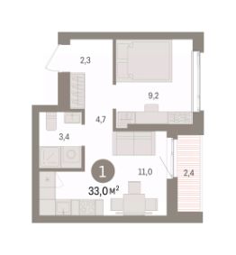 Продается 1-комн. квартира с предчистовой отделкой в ЖК "Квартал Траектория" на 19 этаже. Общая площадь: 33 кв.м. Высота потолков 2.82 м.