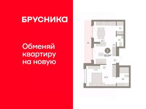 Продается однокомнатная квартира от застройщика с предчистовой отделкой в ЖК "Квартал Траектория" на 23 этаже. Общая площадь: 53.5 кв.м. Высота потолков 2.82 м.