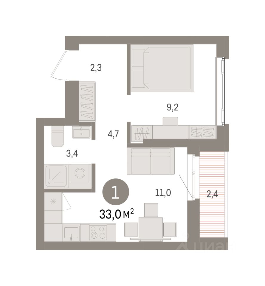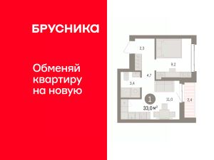 Продается однокомнатная квартира с предчистовой отделкой в ЖК "Квартал Траектория" на 16 этаже. Общая площадь: 33 кв.м. Высота потолков 2.82 м.