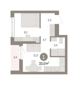 Продается однокомнатная квартира с предчистовой отделкой в ЖК "Квартал Траектория" на 16 этаже. Общая площадь: 33 кв.м. Высота потолков 2.82 м.