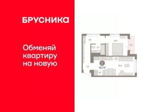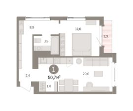 Просторная однокомнатная квартира с предчистовой отделкой в ЖК "Квартал Траектория" на 13 этаже. Общая площадь: 50.7 кв.м. Высота потолков 2.82 м.