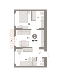 Просторная двухкомнатная квартира с предчистовой отделкой в ЖК "Квартал Траектория" на 5 этаже. Общая площадь: 51.9 кв.м., жилая: 22 кв.м., площадь просторной кухни-столовой: 16.3 кв.м. Комнаты изолированные, все окна выходят на одну сторону. В квартире один балкон, два совмещенных санузла. Высота потолков 2.82 м.