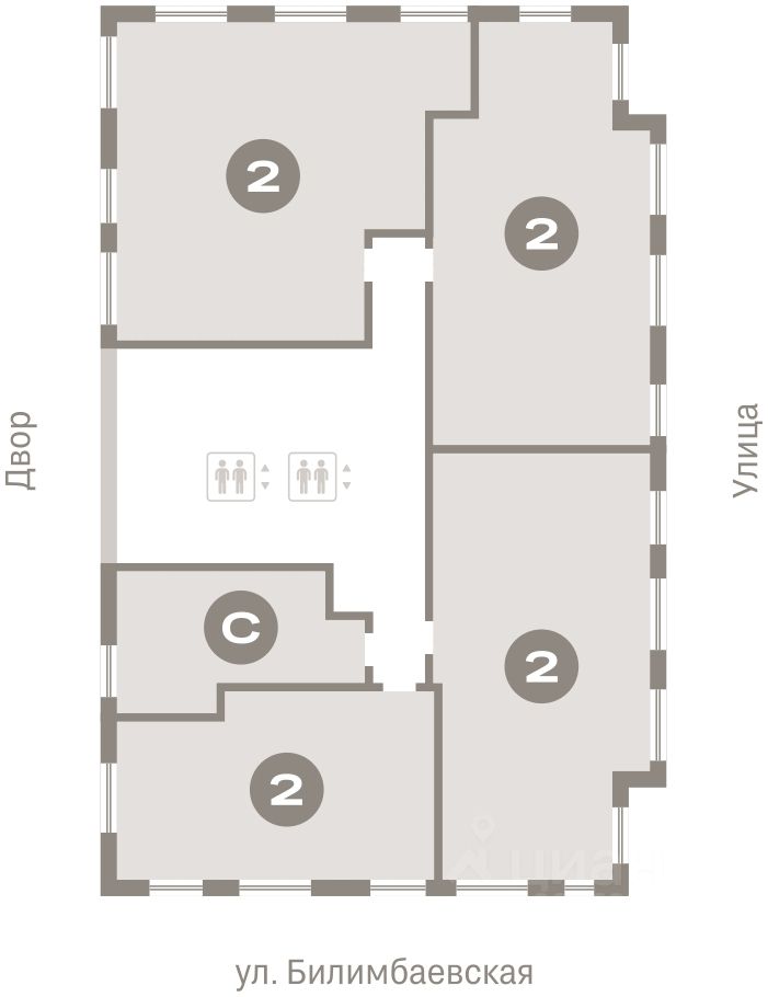 Квартира с кухней-гостиной и двумя спальнями в квартале "Траектория". Особенности планировки: балкон, вид во двор, гардеробная, мастер-спальня, предчистовая отделка, разнесённые спальни.