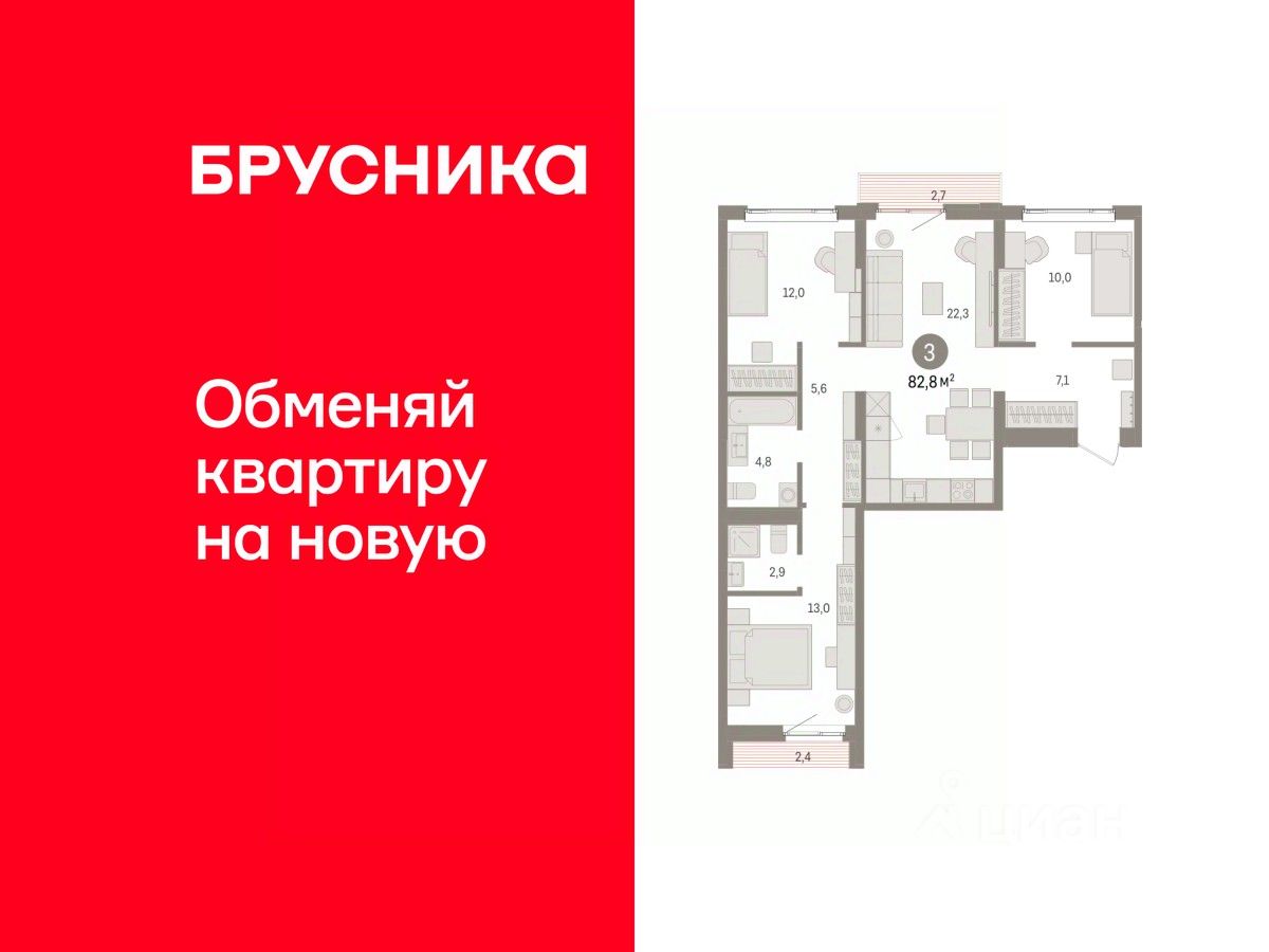 Просторная 3-комн. квартира с предчистовой отделкой в ЖК "Квартал Траектория" на 4 этаже. Общая площадь: 82.8 кв.м., жилая: 35 кв.м., площадь просторной кухни-столовой: 22.3 кв.м. Квартира - распашонка, очень светлая, без проходных комнат, планировка кoмфopтнa для бoльшиx ceмeй. В квартире два балкона, два совмещенных санузла. Высота потолков 2.82 м.