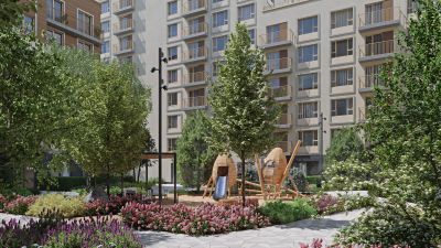 В "Траектории" мы предусмотрели несколько общественных пространств, открытых для всех горожан: встречающий сквер, лесопарк у храма и событийный сквер между домами. Когда захочется тишины и уединения, можно устроить прогулку во внутренних дворах: в них нет машин и посторонних, зато много зелени, света и мест для отдыха.