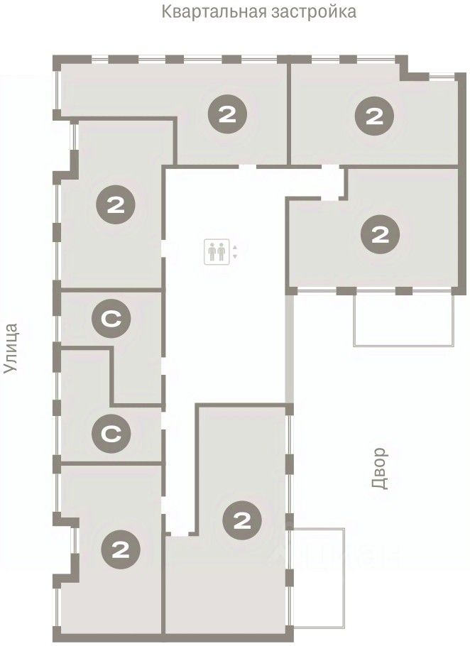 Квартира с кухней-гостиной и двумя спальнями в квартале "Траектория". Особенности планировки: вид во двор, гардеробная, мастер-спальня, окна в пол, панорамное остекление, потолки 3 м и выше, предчистовая отделка, разнесённые спальни, терраса.