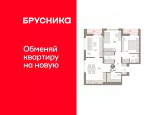 3-комн. квартира от застройщика с предчистовой отделкой в ЖК "Квартал Траектория" на 14 этаже. Общая площадь: 82.8 кв.м. Высота потолков 2.82 м.