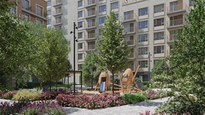 В "Траектории" мы предусмотрели несколько общественных пространств, открытых для всех горожан: встречающий сквер, лесопарк у храма и событийный сквер между домами. Когда захочется тишины и уединения, можно устроить прогулку во внутренних дворах: в них нет машин и посторонних, зато много зелени, света и мест для отдыха.