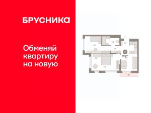 Квартира с кухней-гостиной и двумя спальнями в квартале "Траектория". Особенности планировки: балкон, предчистовая отделка, разнесённые спальни.