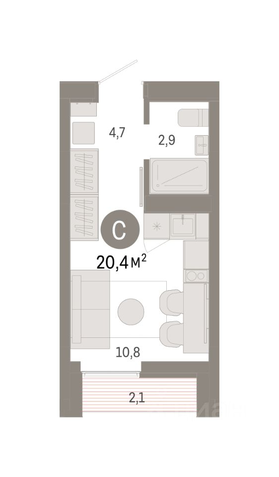 Студия в районе Шишимская горка. Особенности планировки: второй санузел, гардеробная, предчистовая отделка, терраса на крыше.