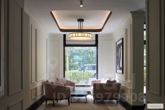 Вход во двор организован через колоннаду. Планировочно он разделён на две части. Парадный партер с большим количеством стриженых растений, фонтанами, цветущими кустарниками и более "домашняя", уютная зона, где высажены деревья и низкорослые хвойные растения, многолетники. В центре двора — две детские площадки. #Z6e2d1