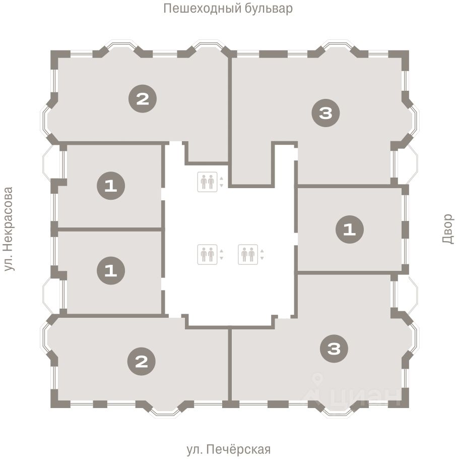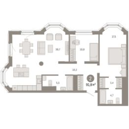Квартира с кухней-гостиной и двумя спальнями в квартале "На Некрасова". Особенности планировки: второй санузел, мастер-спальня, предчистовая отделка.