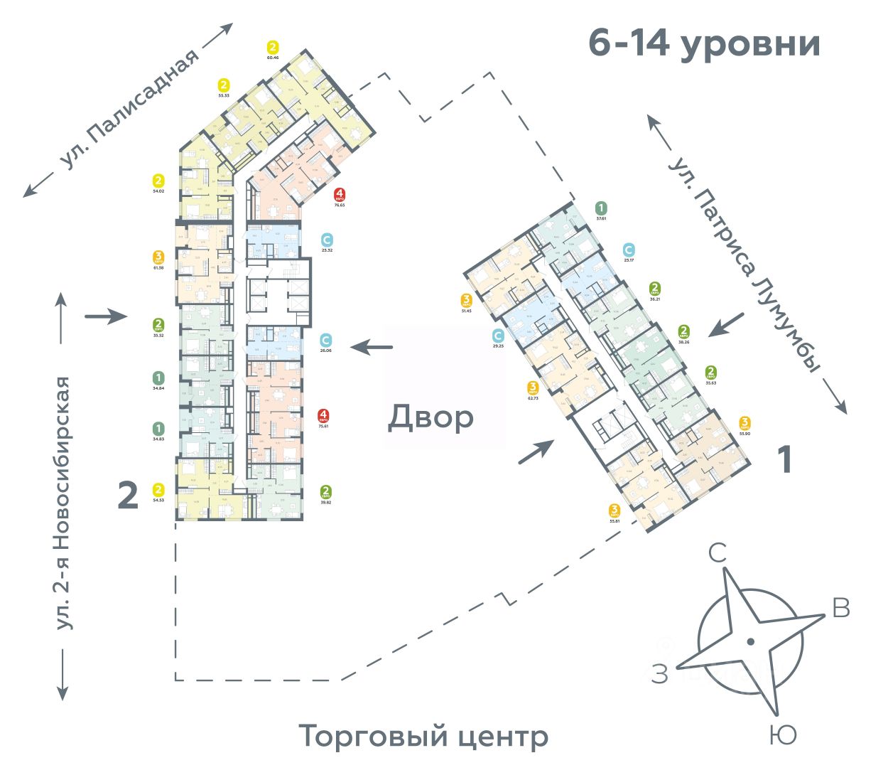 Квартал состоит из двух секций переменной этажности (от 14 до 24 этажей) и подземного паркинга с кладовыми, к которым можно будет спуститься на лифте. На первых этажах предусмотрены коммерческие помещения: жители смогут сделать маникюр, воспользоваться услугами ателье, выпить кофе с круассаном, не покидая своего района. Ввод в эксплуатацию в III кв. 2027 года.
