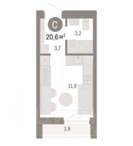 Одновременно с квартирой можно приобрести кладовое помещение площадью 3,77 м2, расположенное в этом же подъезде на -1 этаже