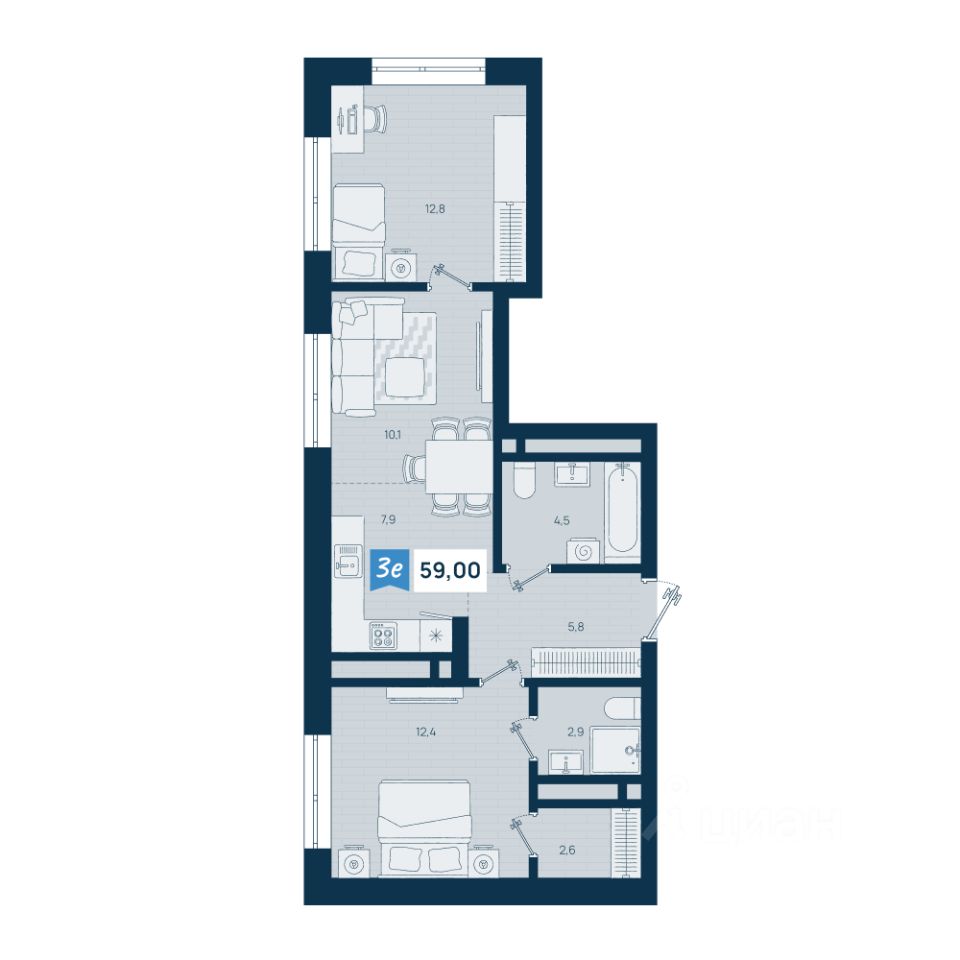 Продаётся 3-комнатная квартира в строящемся доме (Секция 1.1), срок сдачи: II-кв. 2028, общей площадью 59 кв.м., на 10 этаже. Новый жилой комплекс "по ул. Титова" от застройщика "СЗ Уральский Рабочий" расположен по адресу: г. Екатеринбург, улица Титова.