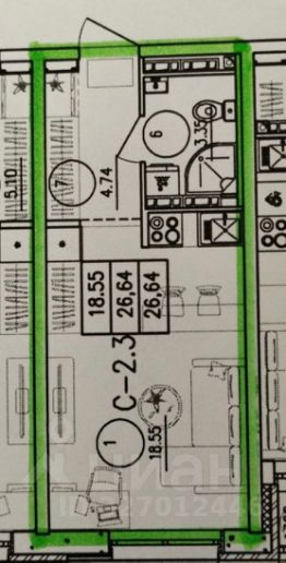 Площадь — 26,1 м²