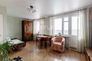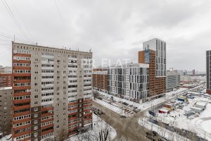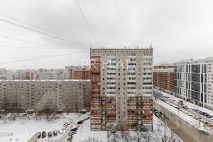 Расположена квартира на видовом 13 этаже. Окна выходят две стороны - восточную (зал) и южную (кухня).