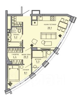 1-кoмнaтная квaртира расположена в завершающей весь комплекс 9-й очереди ЖК "Фoрум Cити".