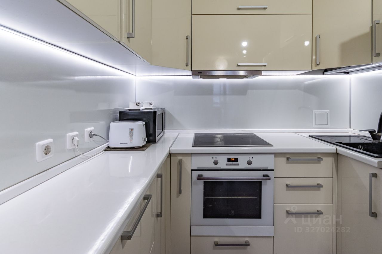 В стоимость входит: кухонный гарнитур с электрическим духовым шкафом и варочной поверхностью, а также вытяжка и водонагреватель.