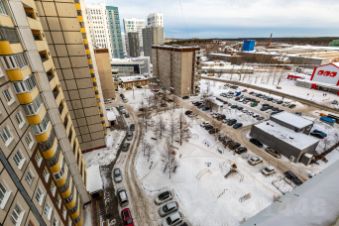 Панорамные окна обеспечивают обилие естественного света и открывают вид на город, а просторная лоджия может быть использована как дополнительное жилое пространство, кабинет или зона отдыха.