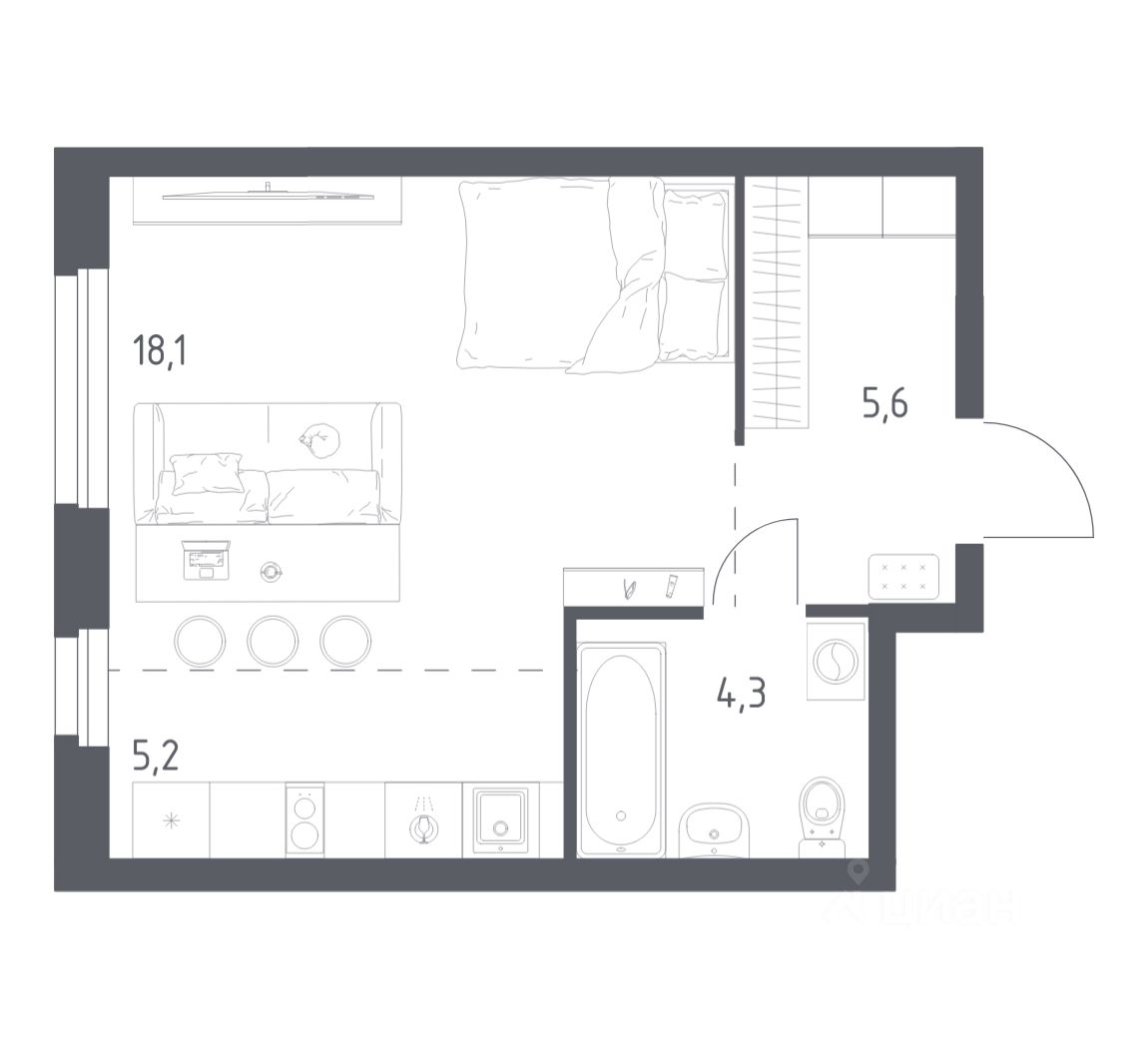 Строим кварталы для жизни с заботой о будущем. Предлагается студия комфорт-класса площадью 33.2 кв.м в корпусе 1КВ на 13-м этаже, в жилом комплексе "Квартал Ауруум".