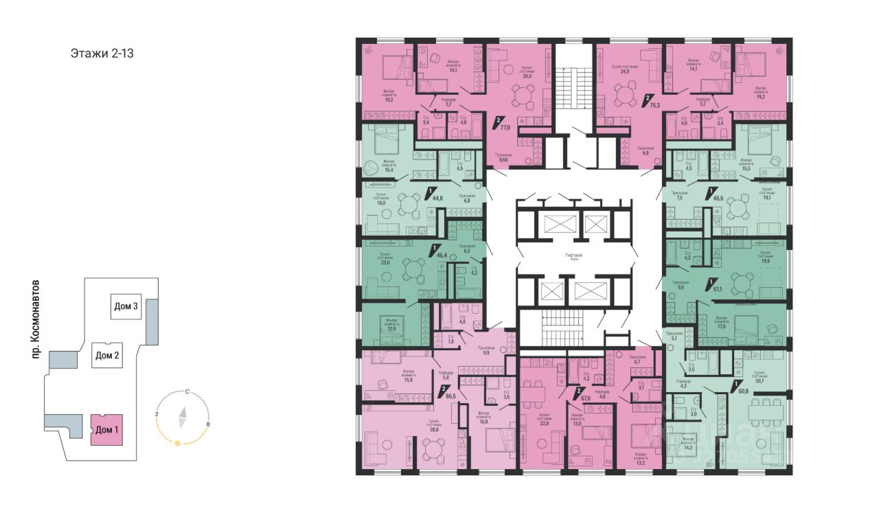 Площадь квартир во второй очереди от 32 до 80 кв. м. В линейке есть:
