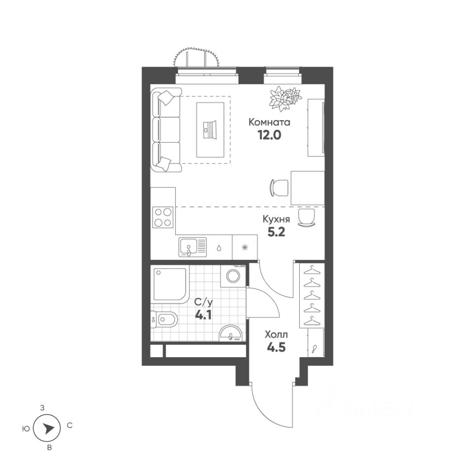 Общая площадь25,8 м²