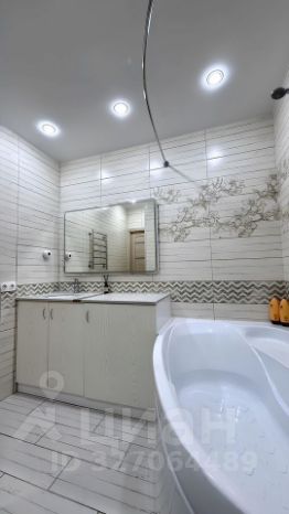 Санузел совмещен.Тёплый пол. Большая ванна. Тумба с каменной столешницей, встроенная стиральная машина. Большое зеркало с диодной подсветкой. Качественная европейская сантехника.