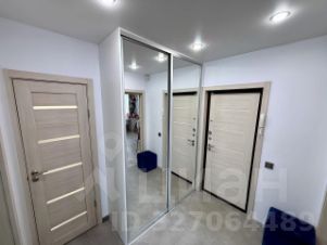 В коридоре большой шкаф-купе с выдвижными ящиками и полками, зеркало во всю высоту.