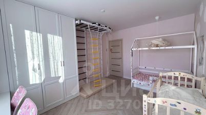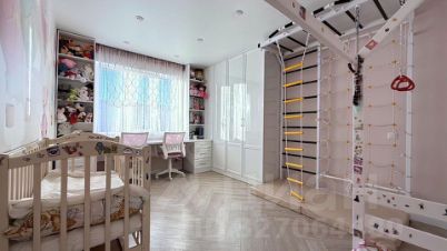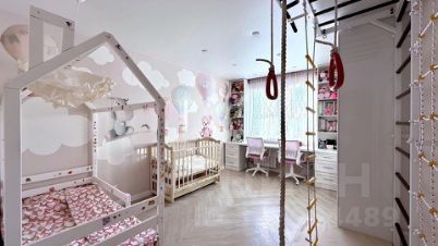В детской встроенная детская рабочая зона, выполненная у окна, с большим столом, тумбами, полками. Встроенный большой шкаф. Спортивный комплекс.