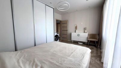 В спальне большой шкаф с выдвижными ящиками и полками + комод. Большая двуспальная кровать. Кондиционер. Сушильная машина. Как и на кухне, два сценария освещения.