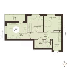 В жилом комплексе спроектированы квартиры на 1, 2 и 3 комнаты, в том числе студийного типа, с высотой потолков 2,72 м. Площадь помещений варьируется от 28,67 до 80,25 м². Лоджии и балконы в квартирах остеклены. "Ривьера Инвест Екатеринбург" сдает жилье с чистовой отделкой.