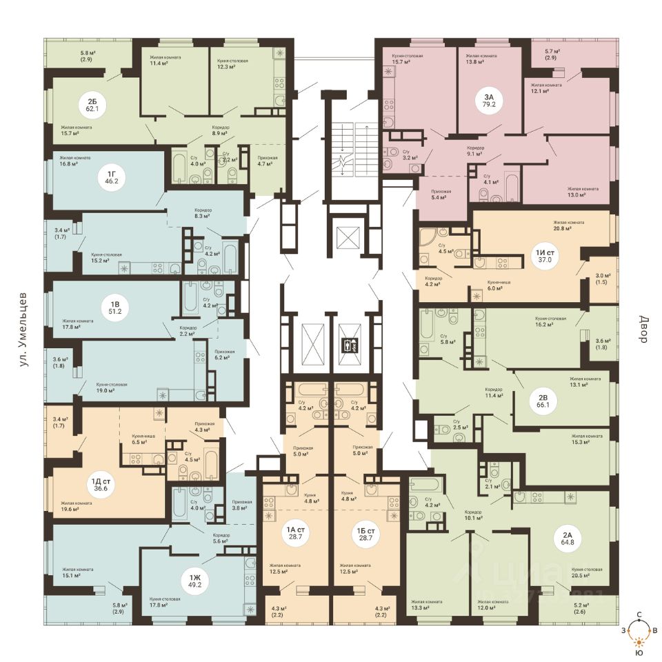 По данным с официального сайта застройщика, ЖК "Южный сад" состоит из 5 высотных домов: