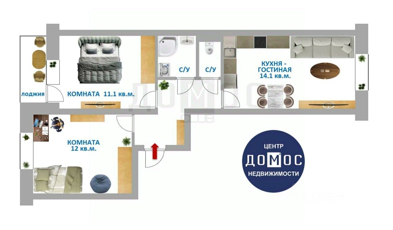 Шикарная двушечка с полноценной ,большой кухней-гостинной.