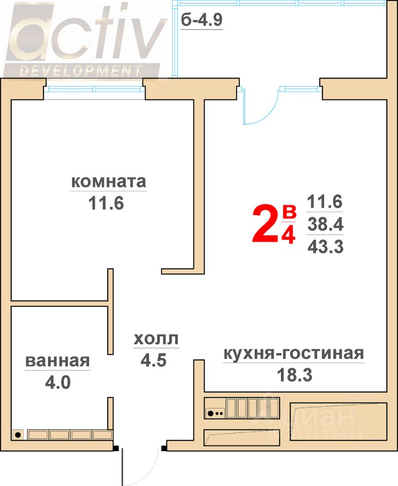38,4 м²