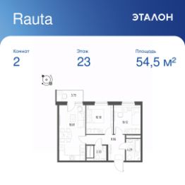 Общая площадь квартиры — 54.5 кв. м, этаж 23 из 25.