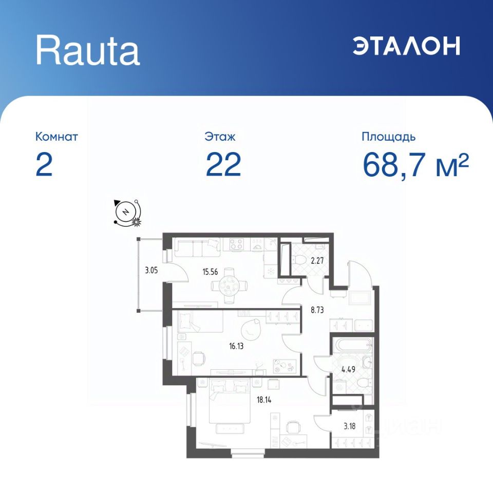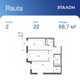 Общая площадь квартиры — 68.7 кв. м, этаж 22 из 25.