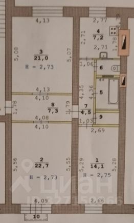 - площадь комнат 21 и 14.1 кв. м. ;