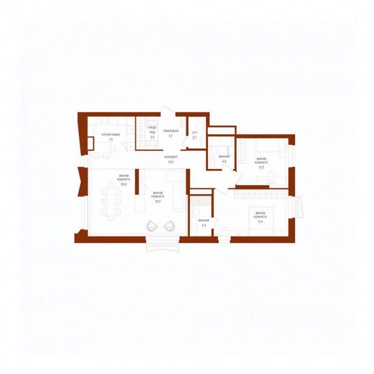 Продаётся 4-комнатная квартира в строящемся доме (Секция 1), срок сдачи: III-кв. 2026, общей площадью 103.8 кв.м., на 29 этаже. Новый жилой комплекс "Форма" от застройщика "Форум-Групп" расположен по адресу: г. Екатеринбург, улица Сони Морозовой.