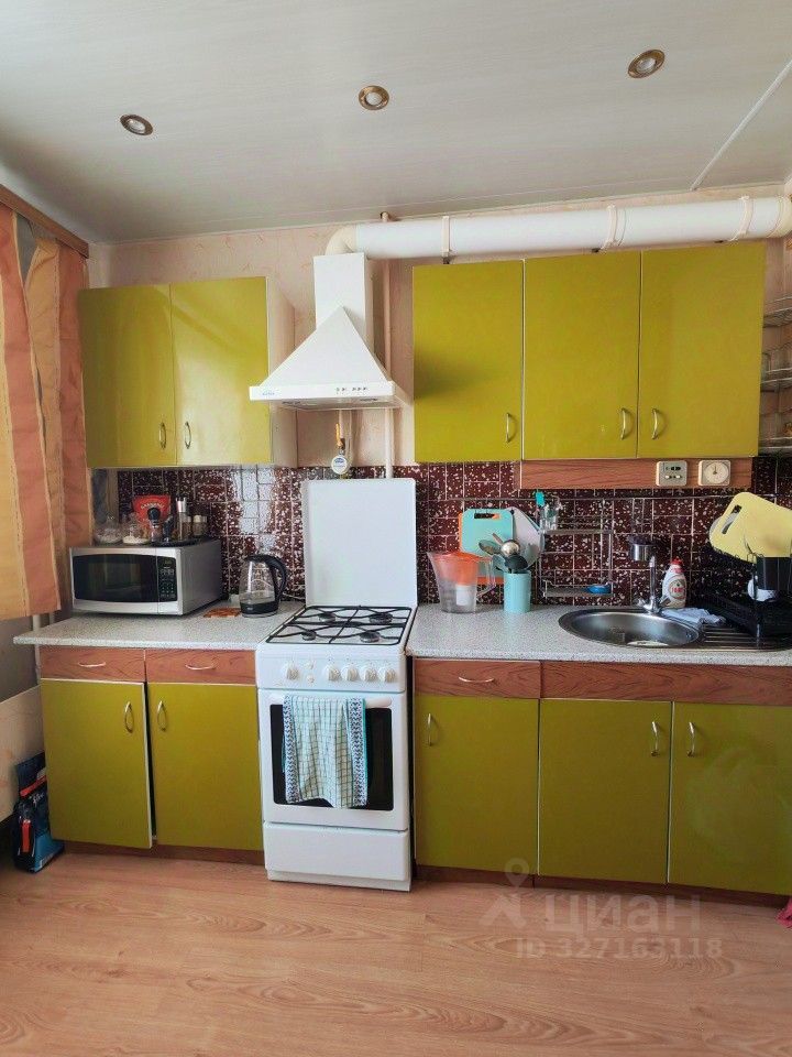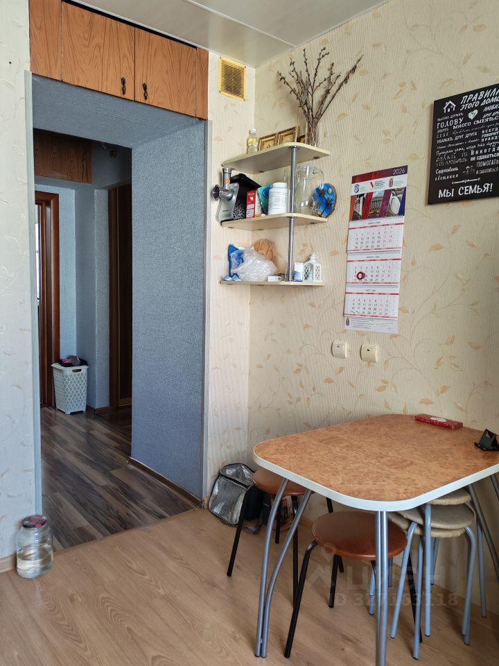 В квартире остается встроенный шкаф в коридоре и кухонный гарнитур.