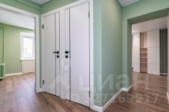 Ремонт: Сделан свежий, современный и качественный дизайнерский ремонт. Заменены полы (бетонная стяжка во всей квартире в один уровень), заменена вся электрика, выровнены все стены (высококачественная штукатурка), заменены стояки в санузле, в комнате новые окна). Установлена новая встроенная мебель (кухня, кровать, шкафы, санузлы "под ключ" и новая техника)- экономит место и избавляет от необходимости думать, куда поставить шкаф.