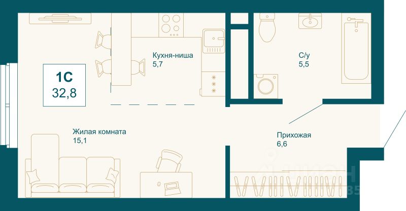 Продаётся студия в строящемся доме (Дом 2.1), срок сдачи: II-кв. 2027, общей площадью 32.8 кв.м., на 20 этаже. Расположение, транспортная доступность
