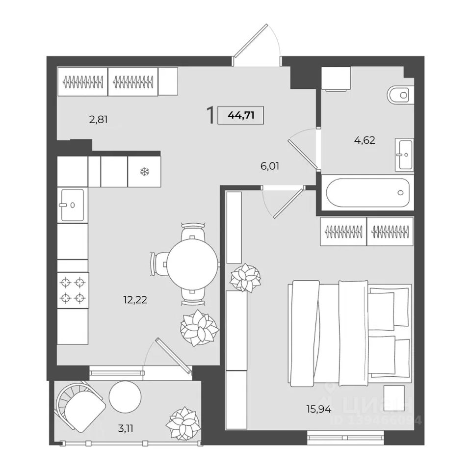 Количество комнат: 1
